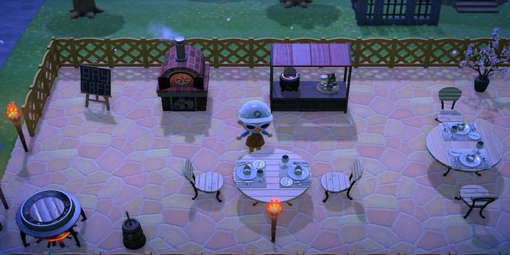 When in doubt, just create a cafe or an outdoor restaurant that fits the vibe of the island. With fences, the place is easy to mark as a separate area.